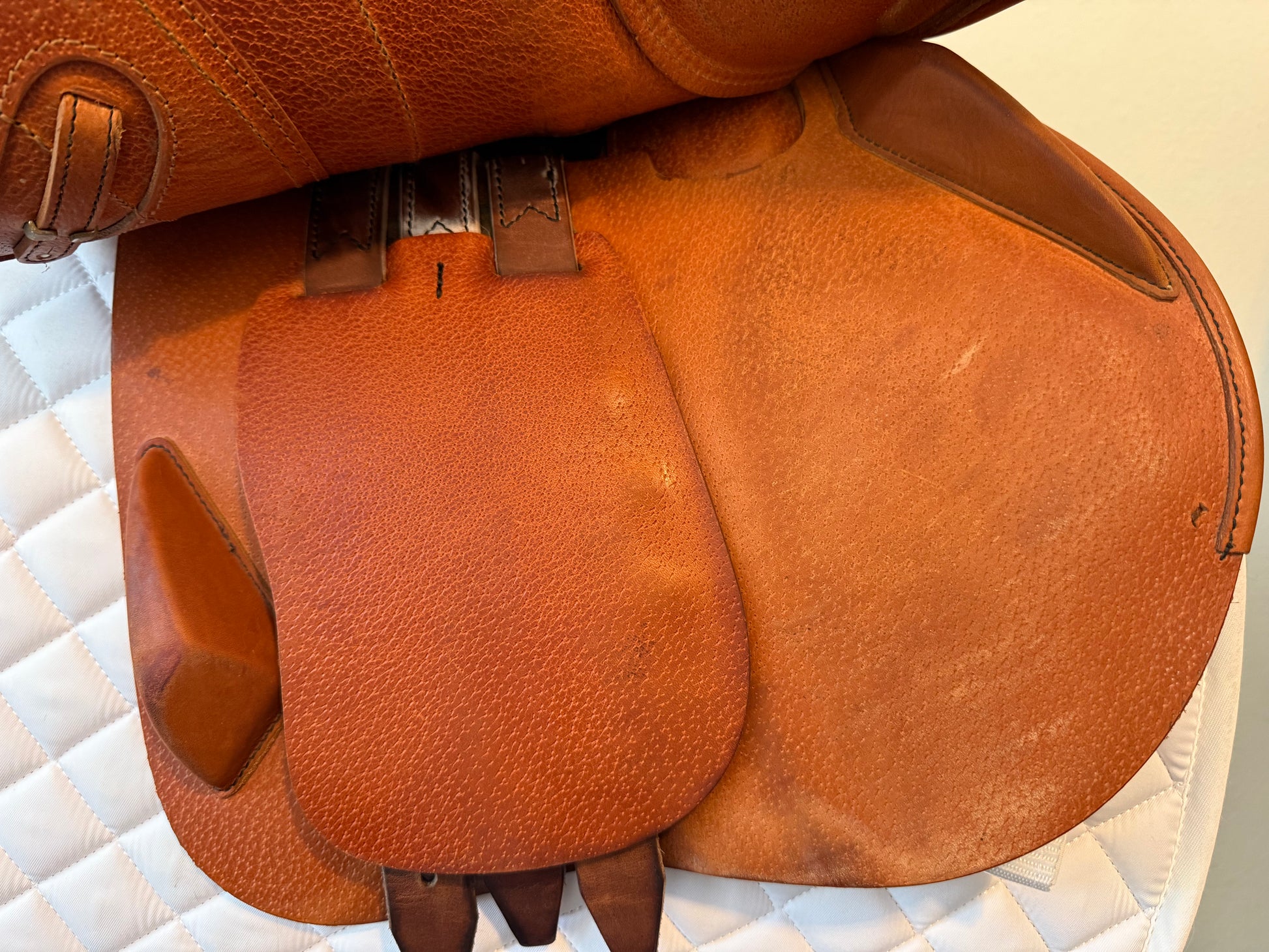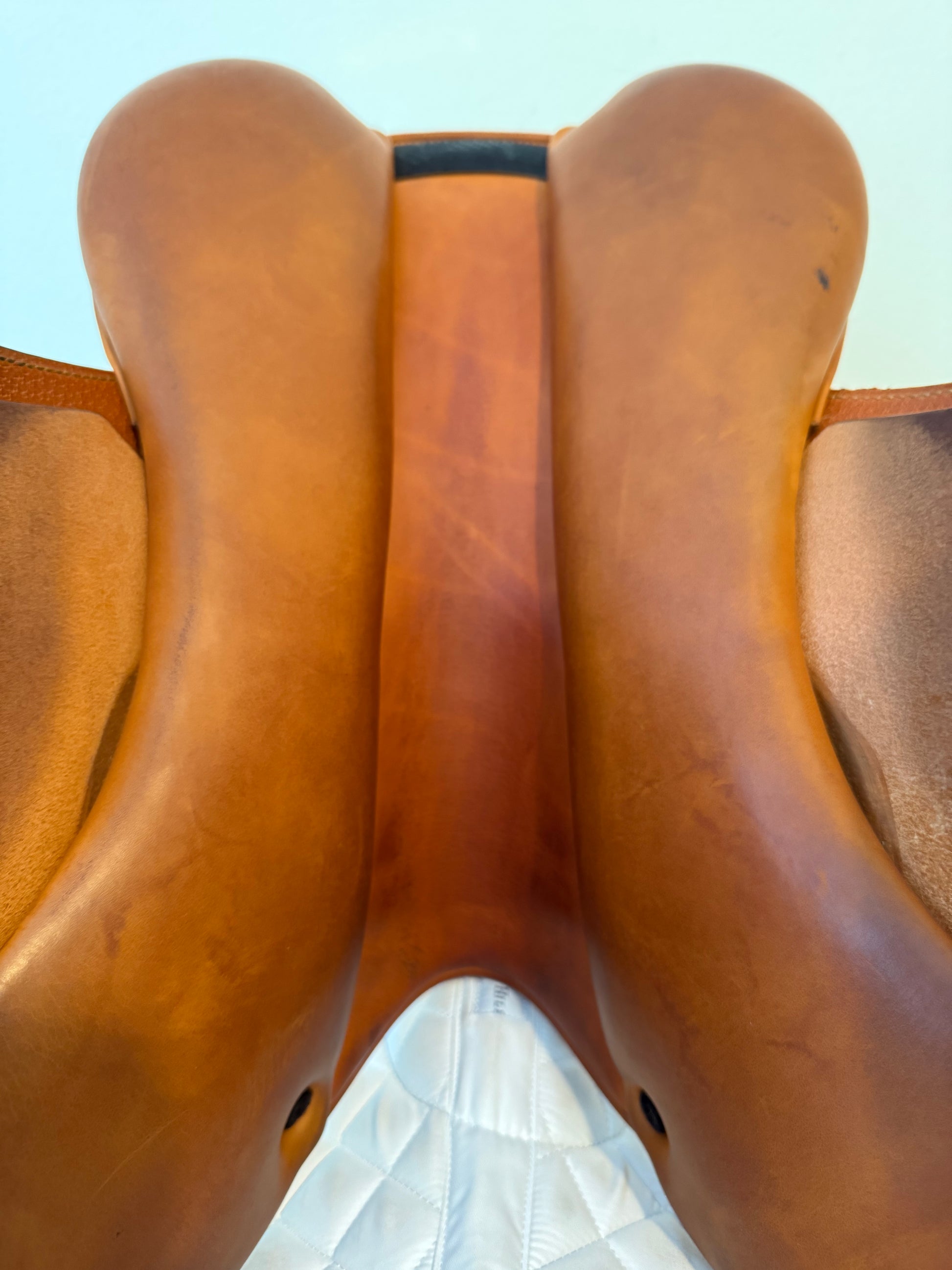 This is a gorgeous, hard to find, Equipe Allegra. This saddle is the ultimate in close contact feel! It offers a narrower twist, slim panels, slim flaps with very little padding to make you feel like you and the horse are one!