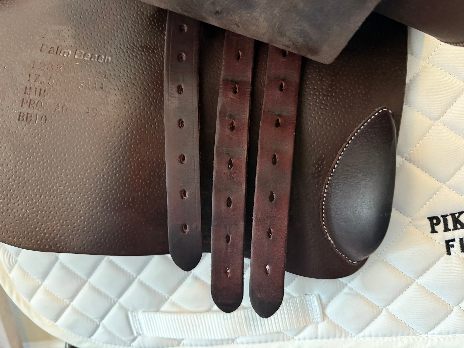 Voltaire's Palm Beach has become legendary for its flatter seat, close contact feel. A staple in the hunter-jumper community, this hard to find 2024 model in nearly new condition with a forward flap surely won't last long.