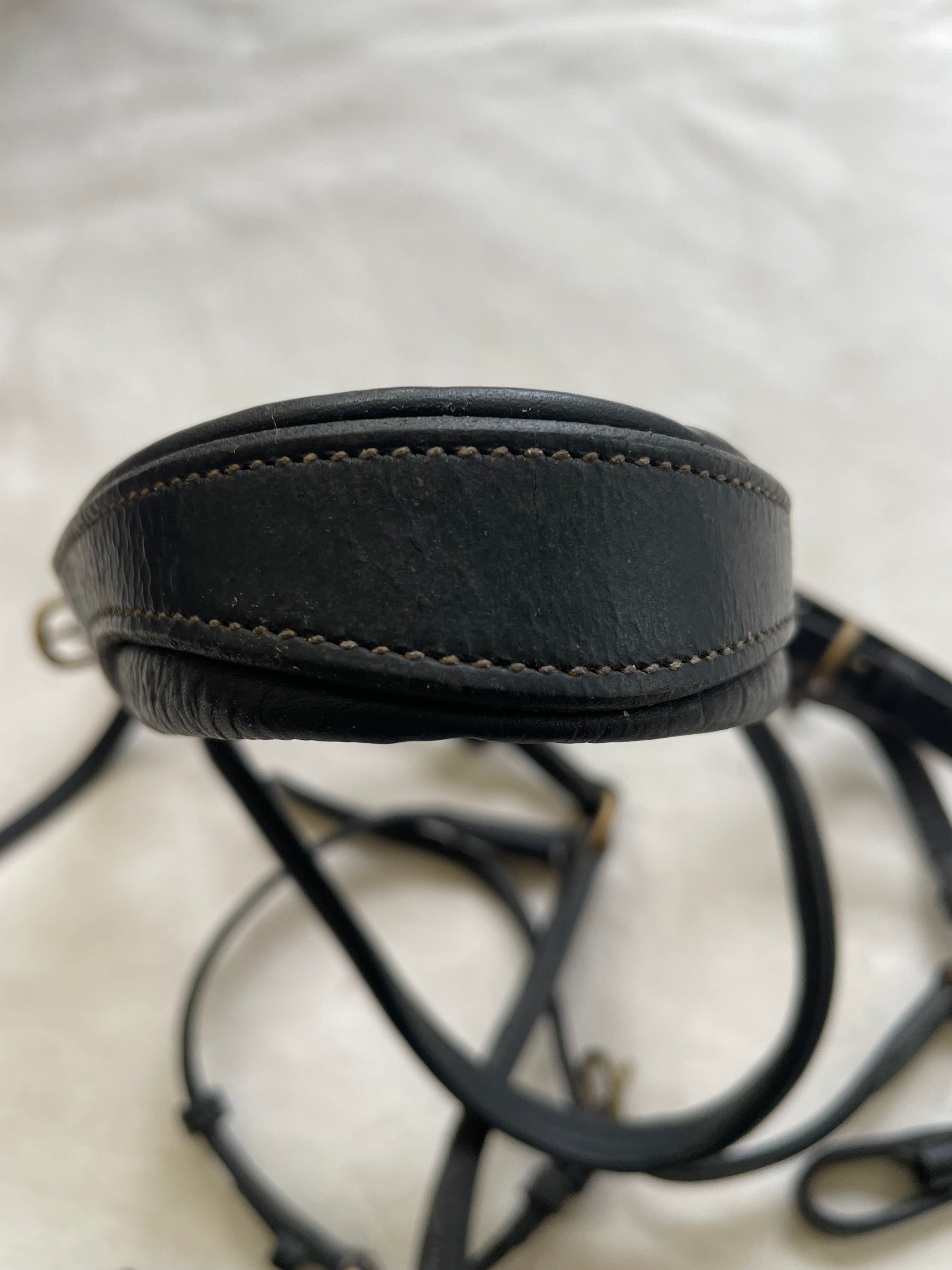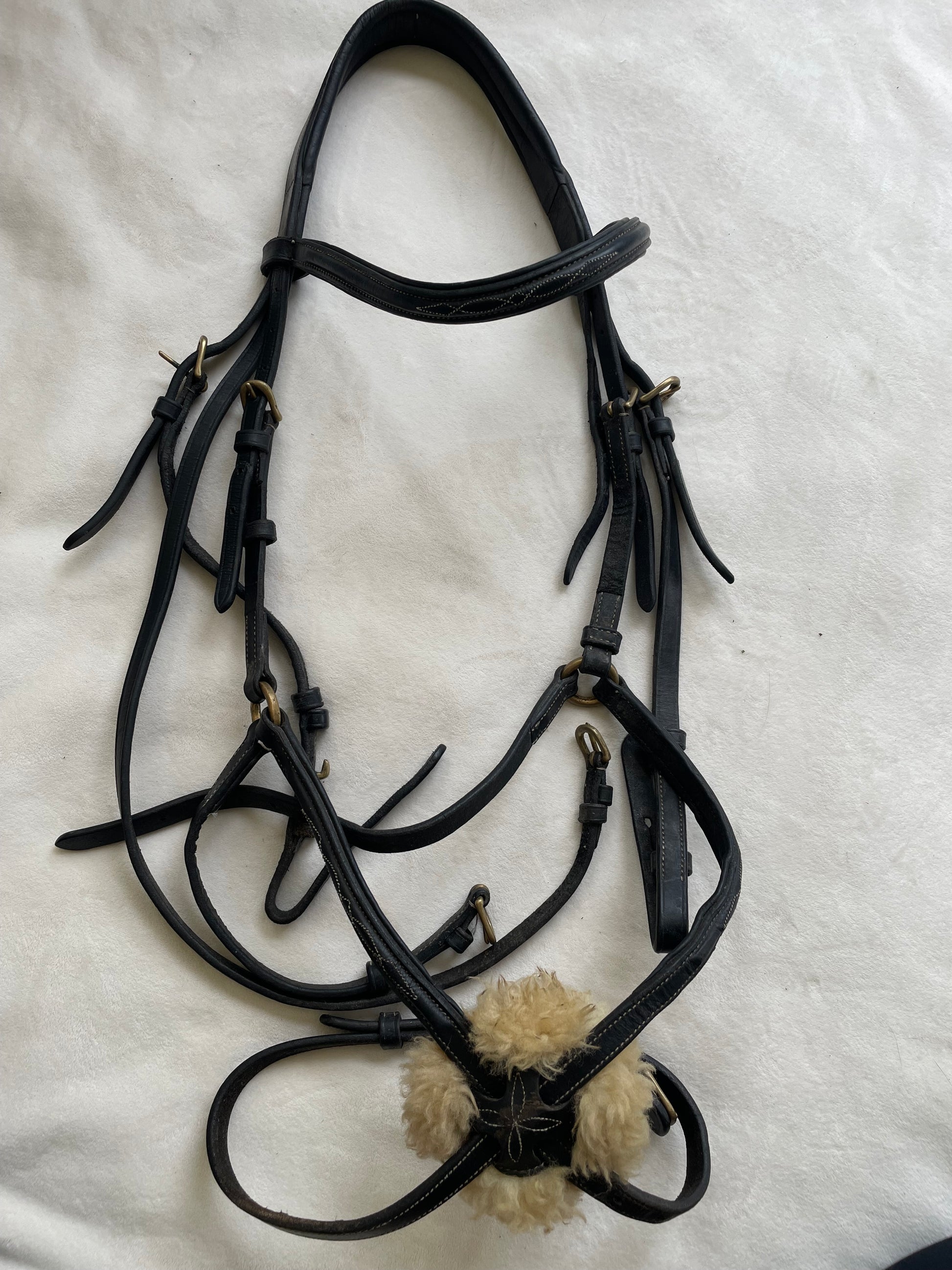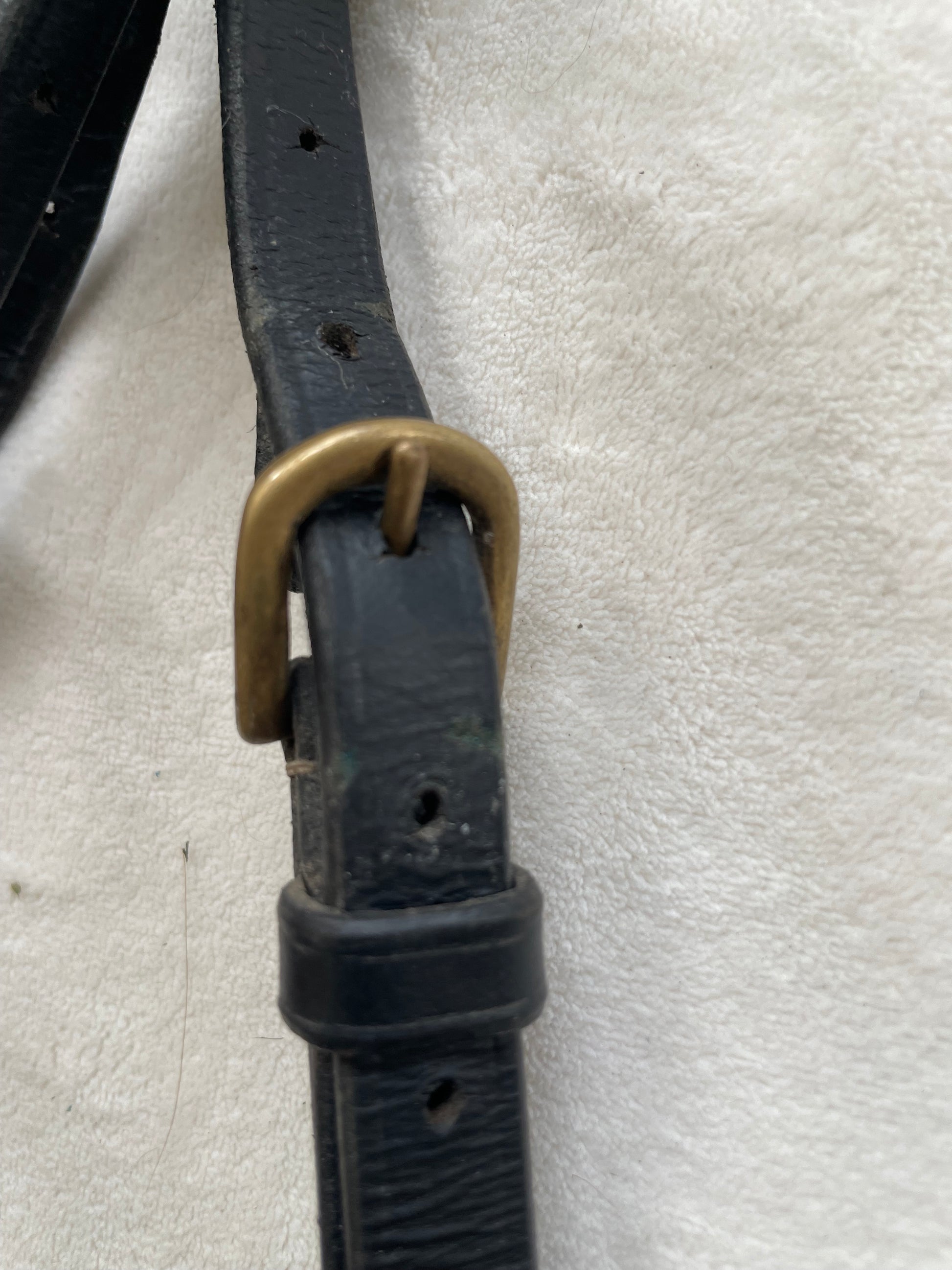 This is a very nice full sized bridle in high quality, supple leather. The bridle tag has come off and I’m not sure of the brand.