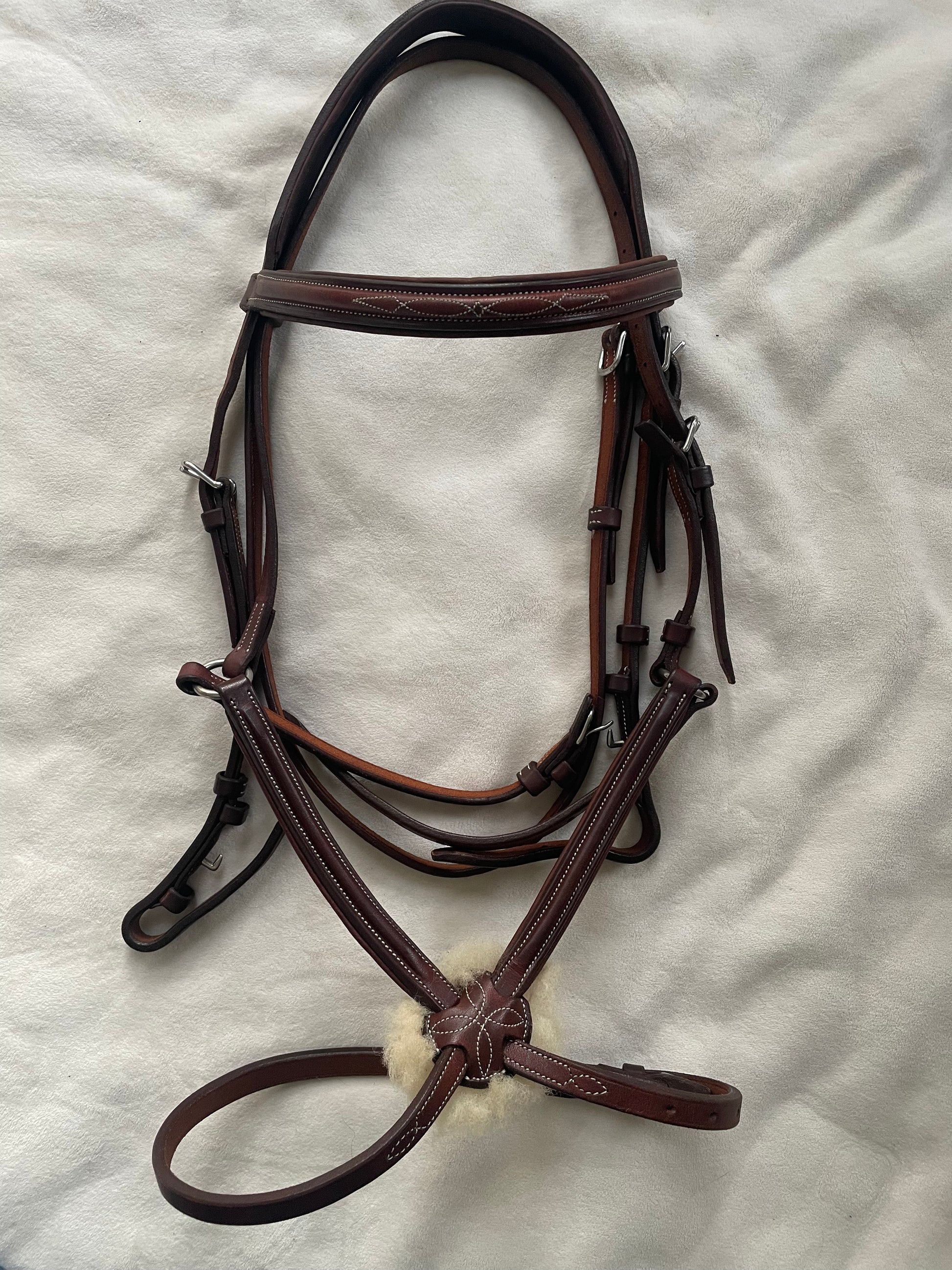New CWD Fancy Stitched Figure 8 Bridle with normal headstall. This is a size 2, cob bridle in new condition.