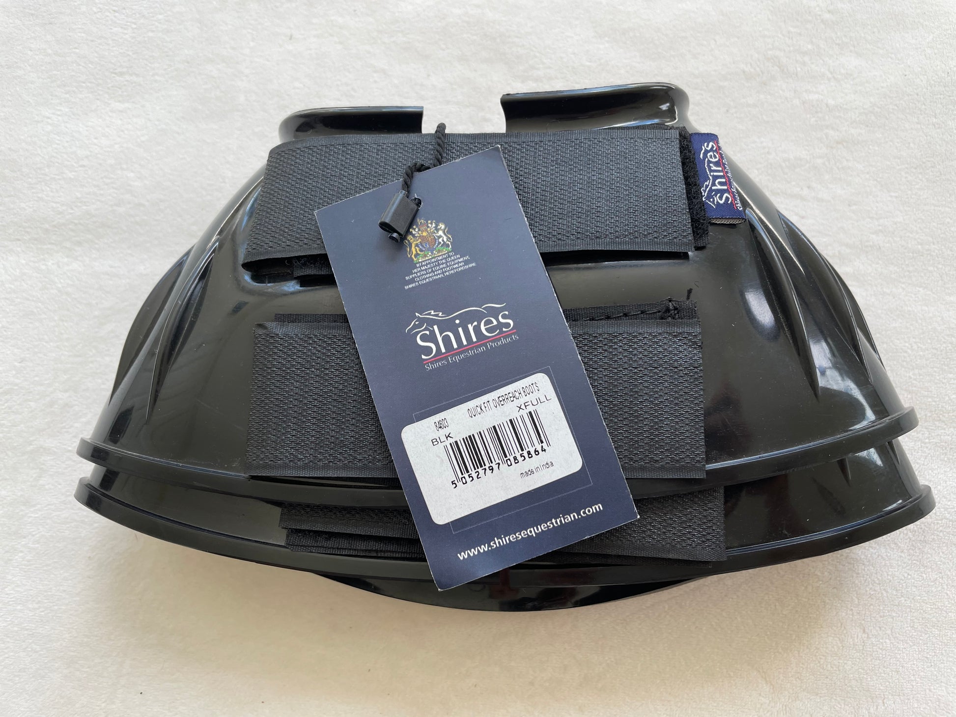 New pair of shiny Shires brand over reach boots. Size XL - super nice!