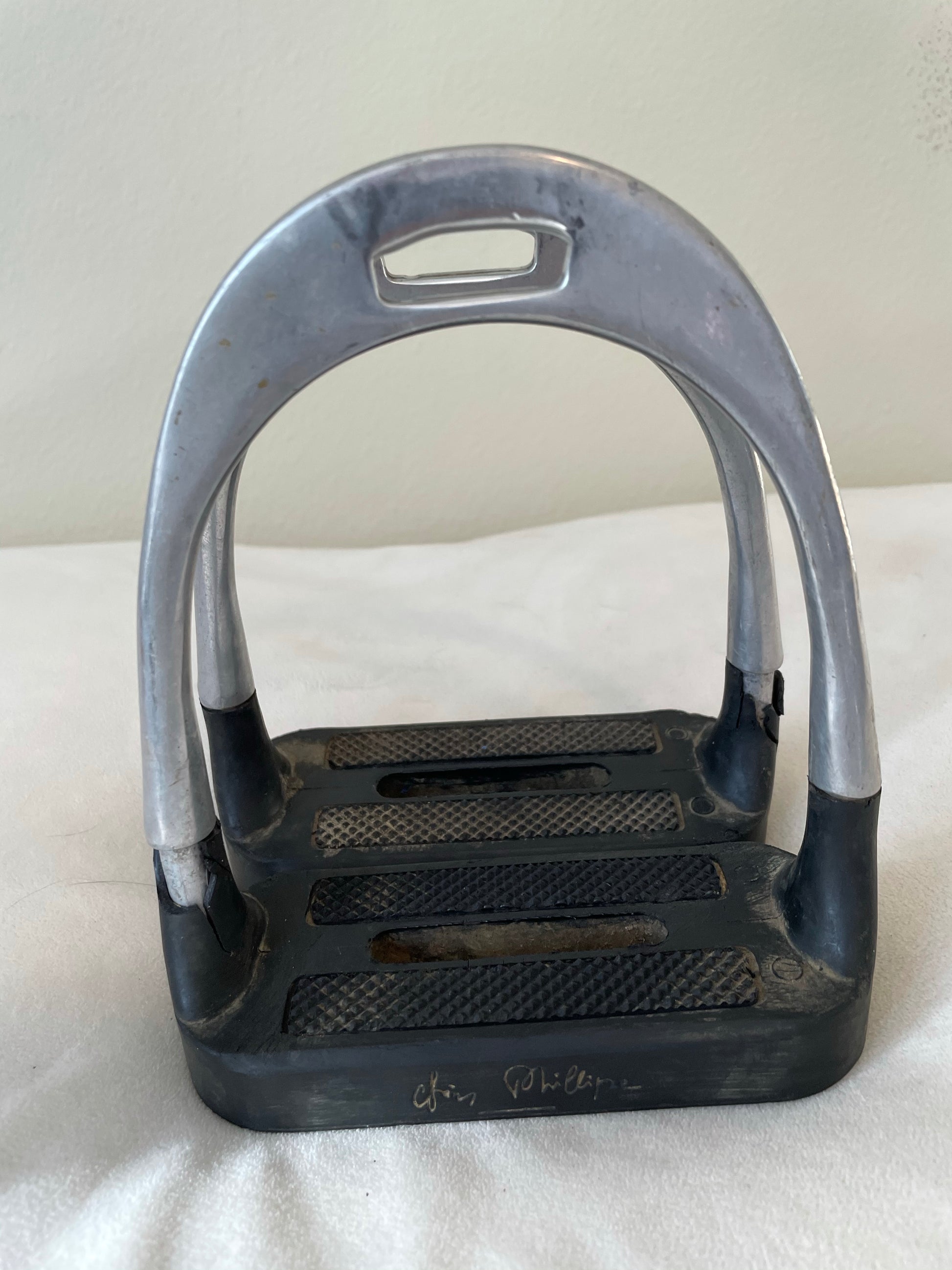 I’m not familiar with this French brand, but these are nice (non-flex) light weight stirrups with rubber tread. I like these a lot. There is some chipping of the rubber on the arms, but does not affect functionality and wouldn’t be noticeable while ridingz