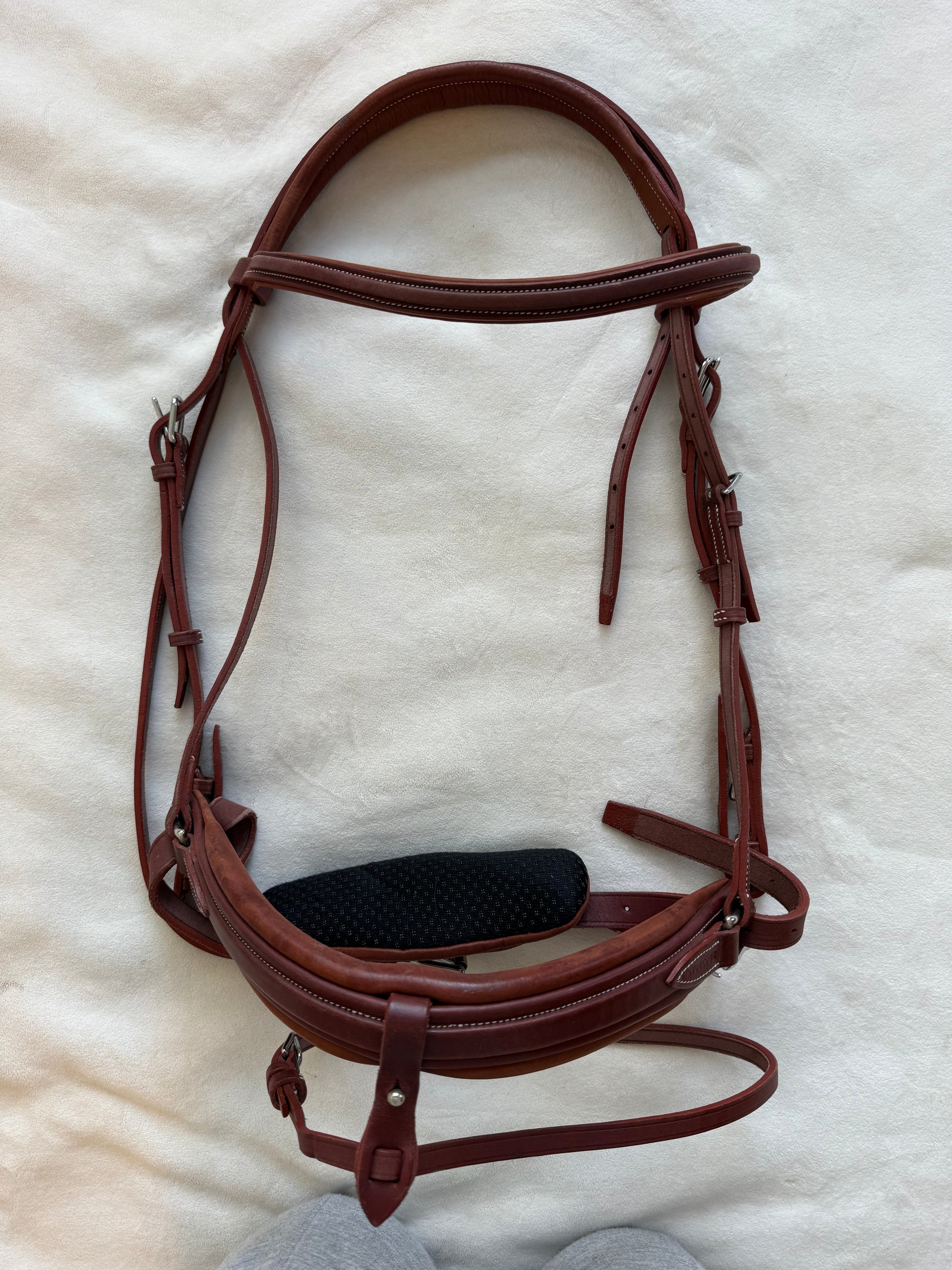 Gorgeous new Devoucoux Harmonie bridle in size medium,l with padded crank and removable flash. Size medium.