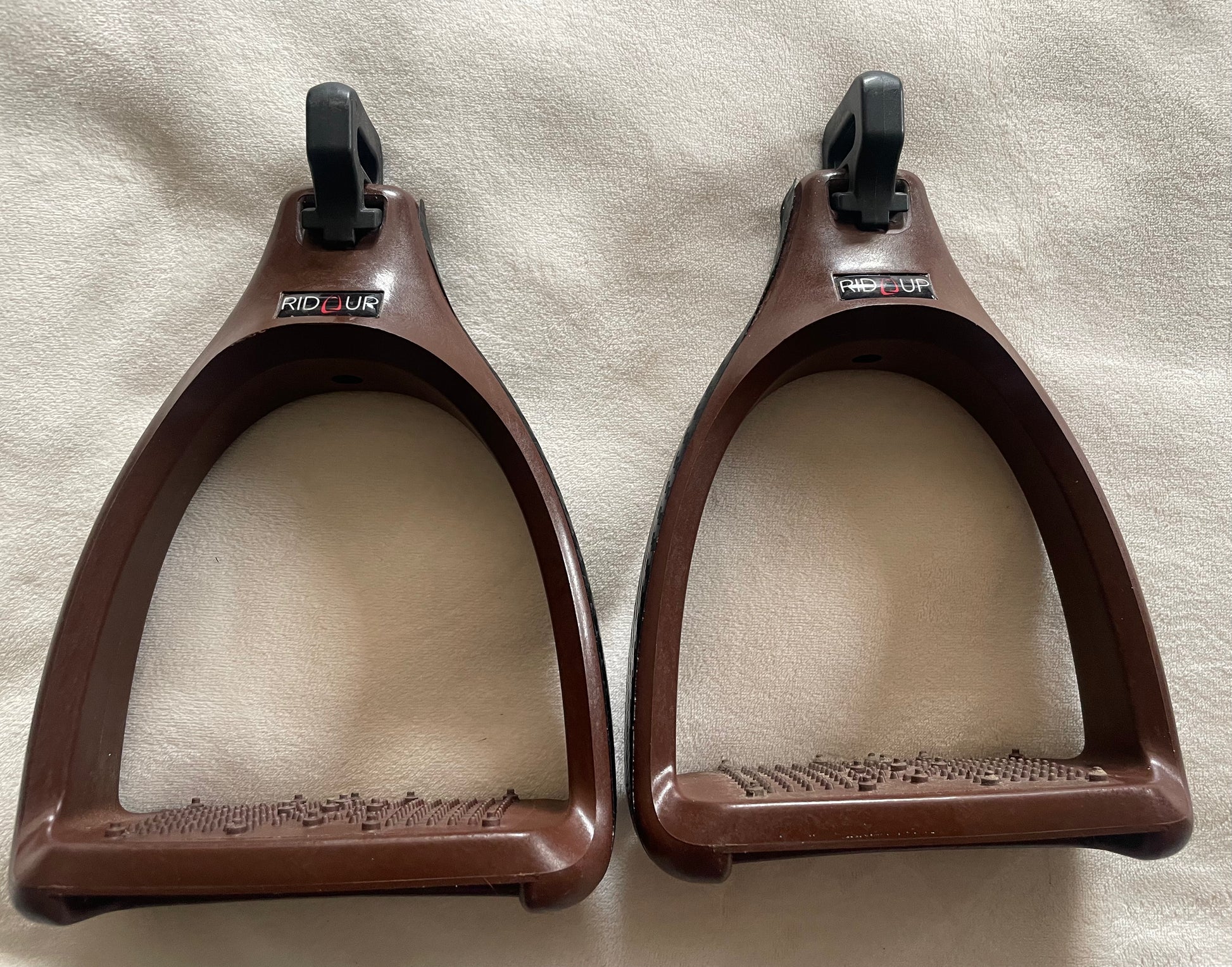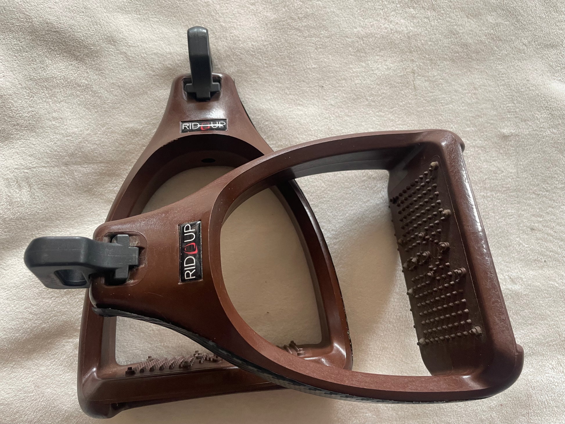 Rid’ Up Safety Stirrups in chocolate. These have only been used a couple of times. Sold like new but without the box.