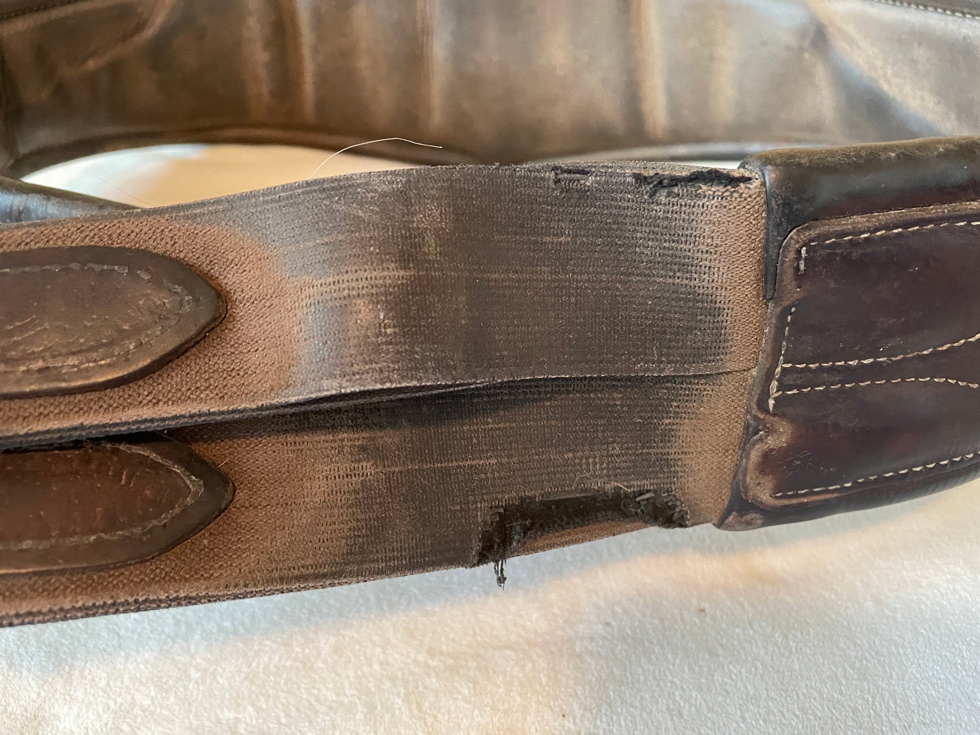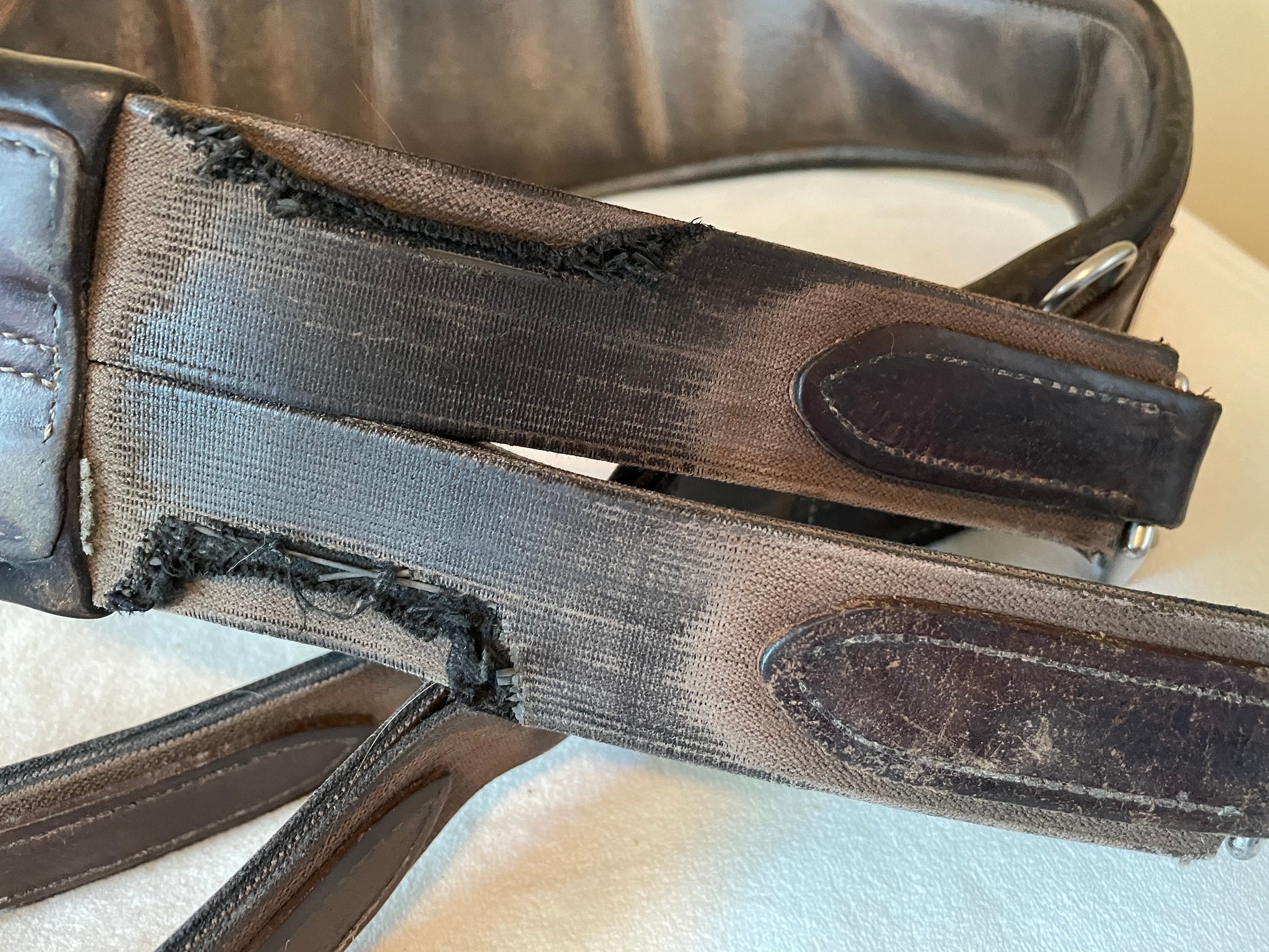Voltaire Deisgn used girth in good/average condition. This girth has some fraying on the elastic and a scrape on the leather.